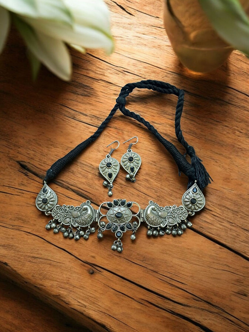 Exquisite Oxidized Silver Necklace and Earring Set (OS1)